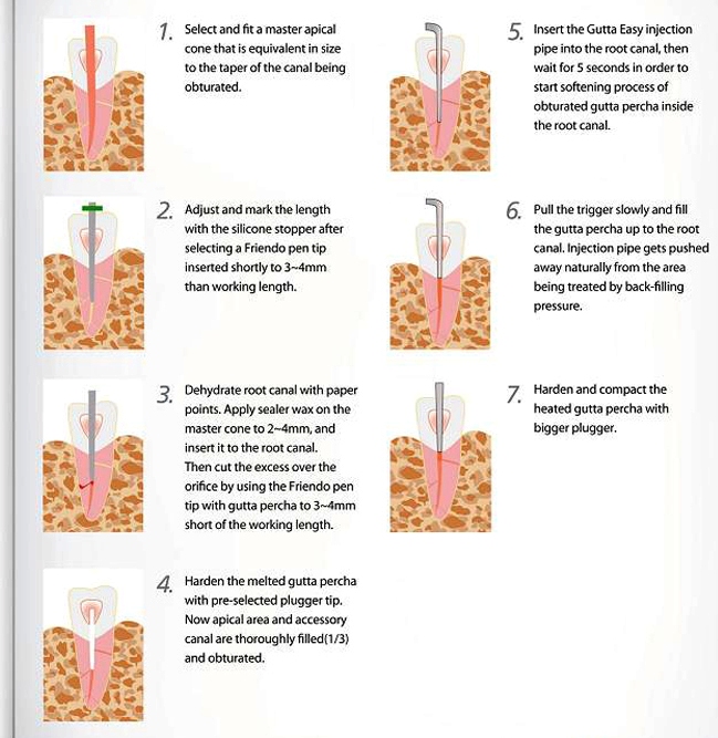 ENDO @ PEX бездротової ендокомплекс для обтурації кореневого каналу складається з двох приладів плагера Friendo і інжектора Gutta Easy, а також, аксесуарів до них (виробництва DXM, Південна Корея):